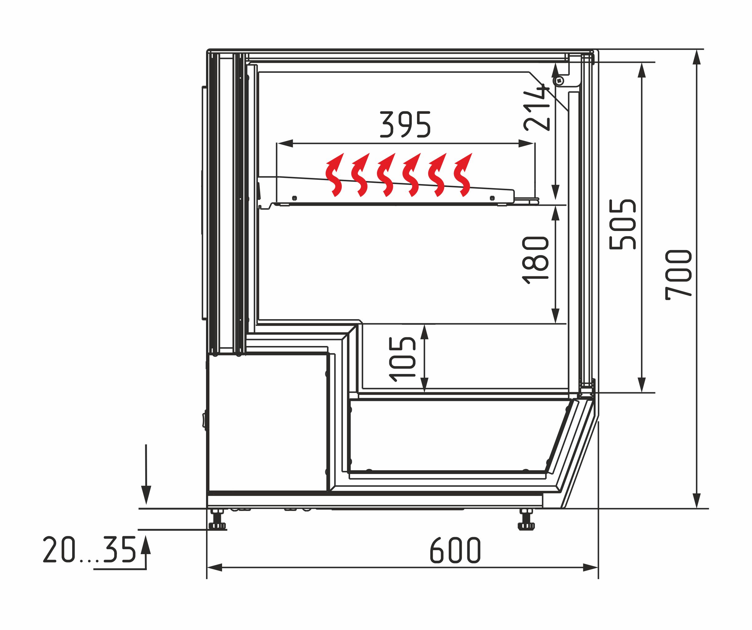 • Металлический поддон для выкладки продуктов, не требующих подогрева