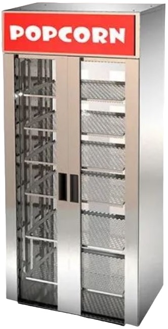 Тепловая витрина RoboLabs VTP-090SD2 используется на предприятиях общественного питания, торговли и пищевых производствах для демонстрации, разогрева и кратковременного хранения попкорна и начос. Модель оснащена 6 регулируемыми полками по высоте, распашными стеклянными дверьми и глухой дверью сзади. Материал корпуса - высококачественная нержавеющая сталь.