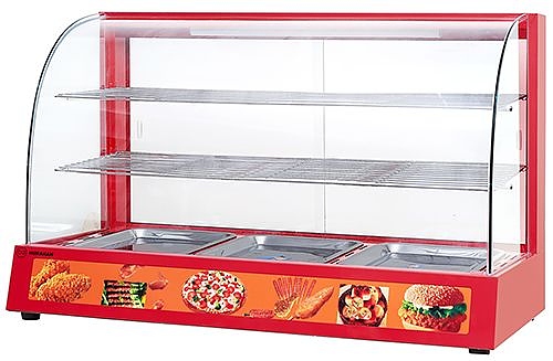 Тепловая витрина Hurakan HKN-WD3E используется на предприятиях общественного питания, торговли и пищевых производствах для демонстрационной выкладки и кратковременного хранения готовых блюд. Модель оснащена механическим управлением и 3 полками-решетками. Материал корпуса - окрашенный металл, материал полок и лотков - полированная нержавеющая сталь, материал стенок - стекло.