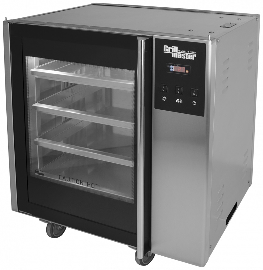Тепловая витрина Grill Master ВГТЭ 22161 используется на предприятиях общественного питания, торговли и пищевых производствах для демонстрационной выкладки, кратковременного хранения и продажи свежеприготовленных кур-гриль. Модель оснащена электронным управлением, 4 направляющими, вентилятором конвекции, пароувлажнением, таймером, термостатом, галогенной подсветкой и поддоном. Материал корпуса и противень - высококачественная нержавеющая сталь, материал дверц - стекло.