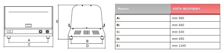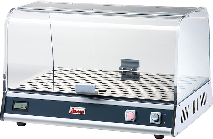 Тепловая витрина Sirman VISTA NIGHT&DAY предназначена для демонстрации и кратковременного хранения готовых пирогов, пицц, булочек и других кондитерских изделий на предприятиях общественного питания и торговли. Модель оснащена цифровым термометром контроля и вместительной полкой, которая обеспечивает оптимальный обзор продуктов.