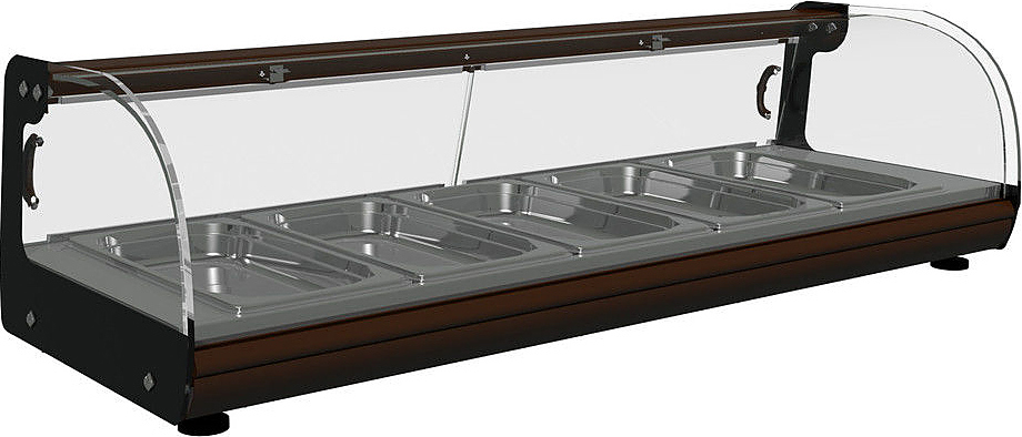 Тепловая витрина KAYMAN К-ВТ-1 предназначена для подогрева, кратковременного хранения и демонстрации бутербродов, мяса, птицы, салатов и десертов на предприятиях общественного питания и торговли. Экспозиционная поверхность выполнена из шлифованной нержавеющей стали, ночные шторки - из оргстекла.