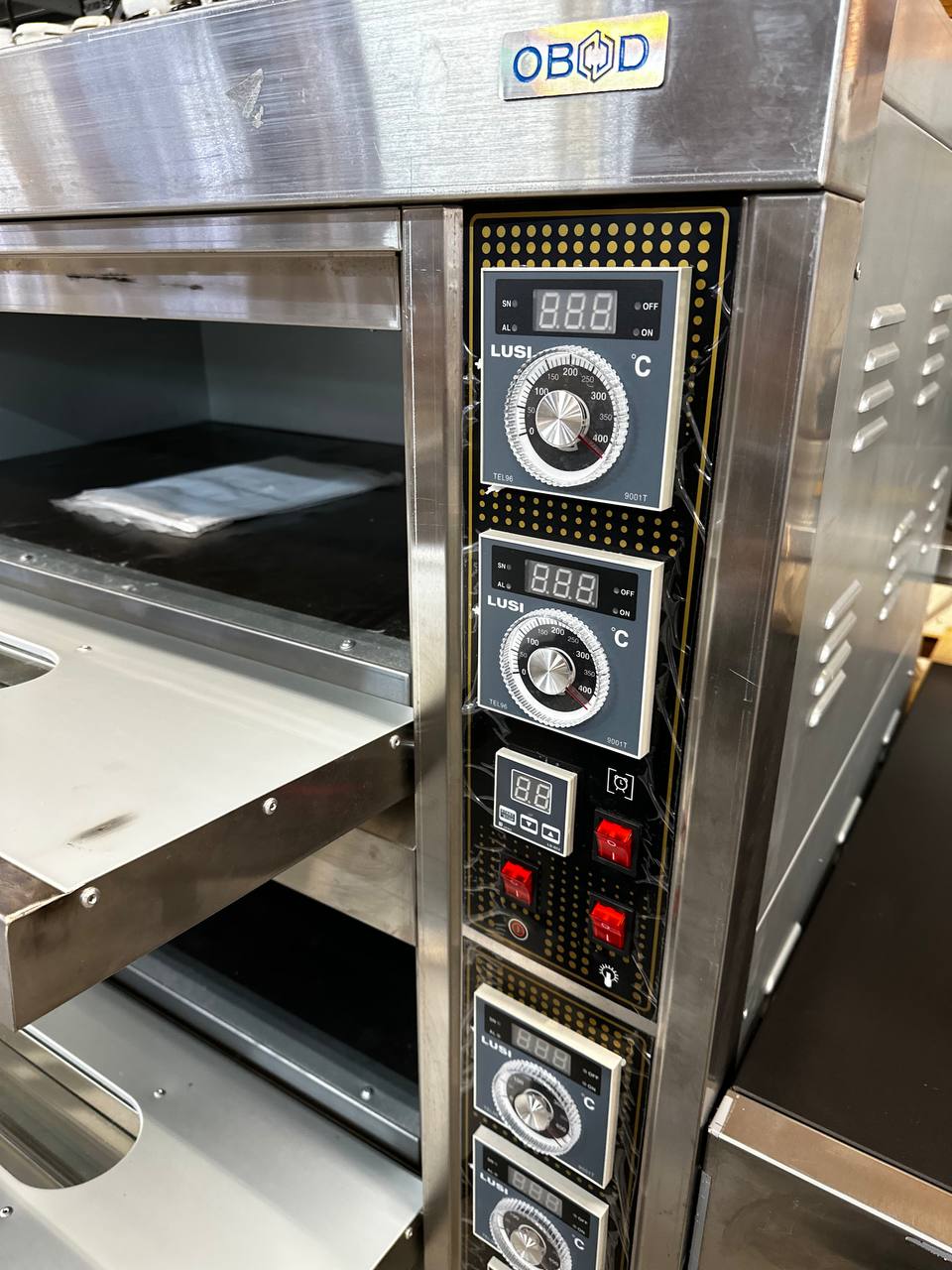 Духовой шкаф OBOD/2 уровня предназначена для приготовления различных блюд и выпечки хлебобулочных и кондитерских изделий на предприятиях общественного питания, торговли и пищевых производствах. Модель оборудована электромеханическим управлением, регулировкой температуры, 2 термостатами для каждой камеры, жаропрочным стеклом и внутренней подсветкой. Материал подов - углеродистая сталь толщиной 3 мм, материал дверц - высококачественная нержавеющая сталь, материал ТЭН - нержавеющая сталь AISI 304.
