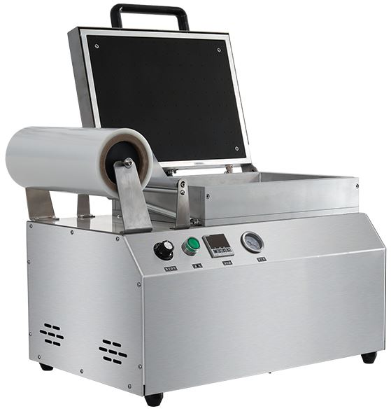 Скин-упаковочная машина Hualian HLV-300VST PREMIUM используется на предприятиях общественного питания, торговли и пищевых производствах для вакуумной упаковки в скин-пленку различных пищевых продуктов. Модель оснащена электромеханическим управлением, температурным контроллером, вакуумной камерой, держателем рулона с пленкой и откидной крышкой. Материал корпуса и камеры - высококачественная нержавеющая сталь.