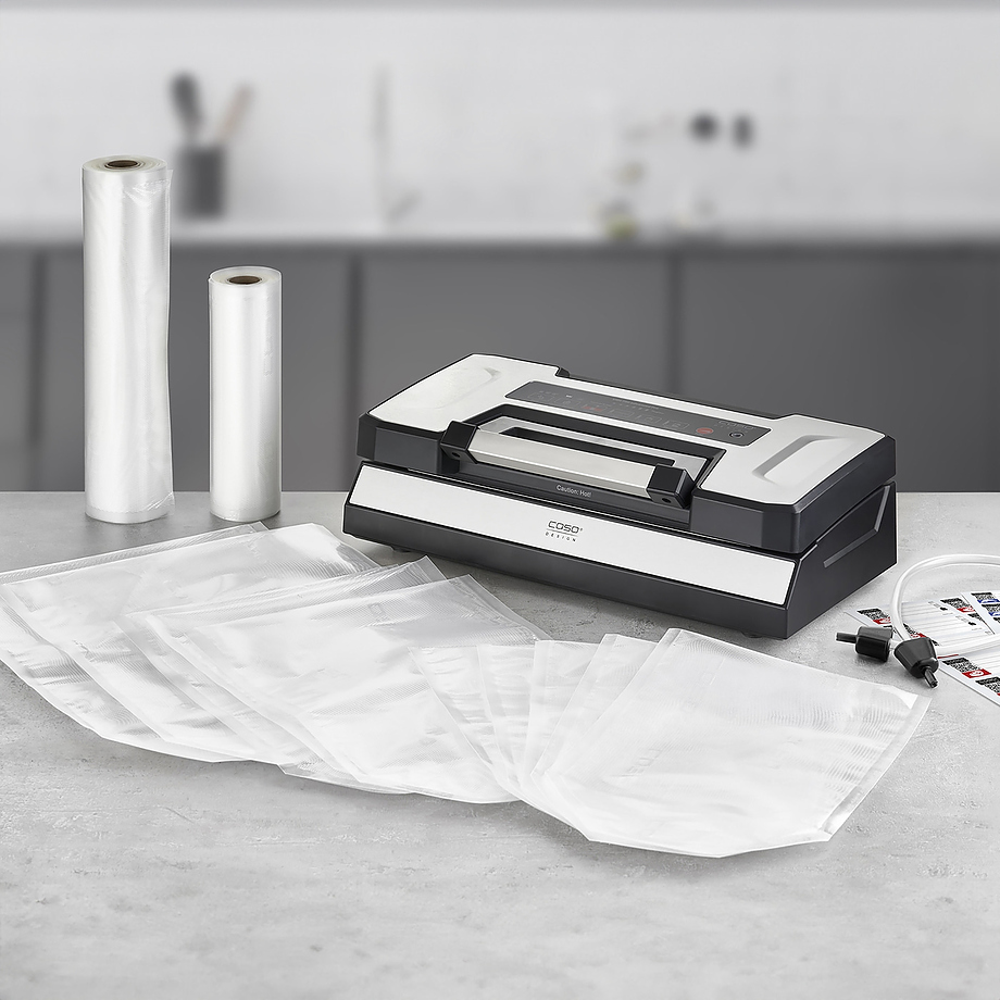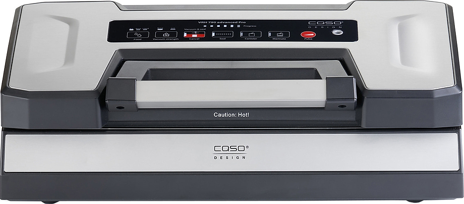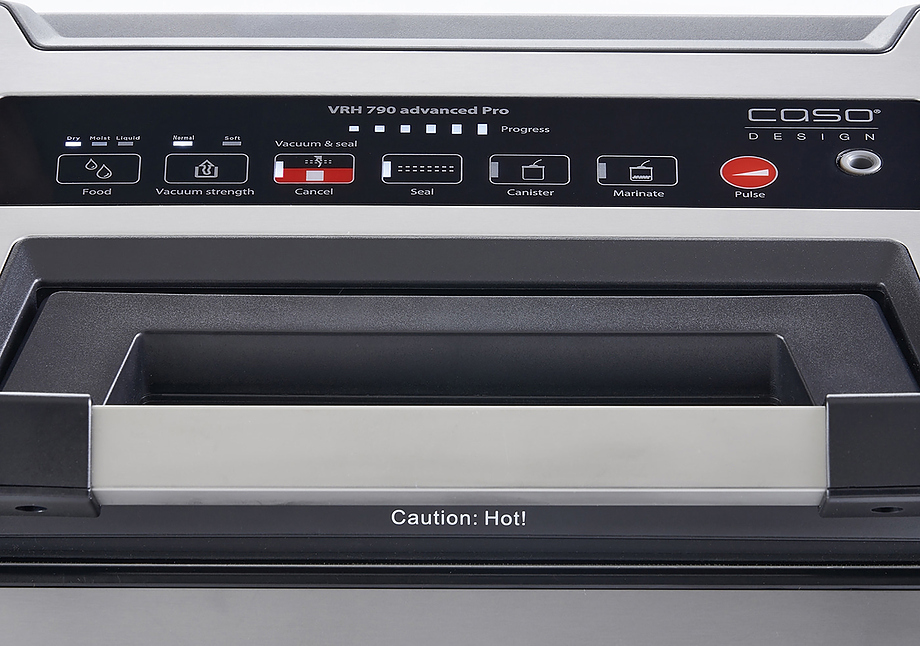 Вакуумный упаковщик CASO VRH 790 advanced используется на предприятиях пищевой промышленности, общественного питания и торговли для герметичной упаковки полуфабрикатов и готовых блюд в пакетах или контейнерах, что способствует продлению их срока хранения. Модель оснащена сенсорным управлением, белым светодиоидным дисплеем, индикацией режимов работы, электронным контроллером температуры сварочного шва, съемным поддоном для сбора влаги и ручкой. Материал корпуса и ручки - высококачественная нержавеющая сталь.