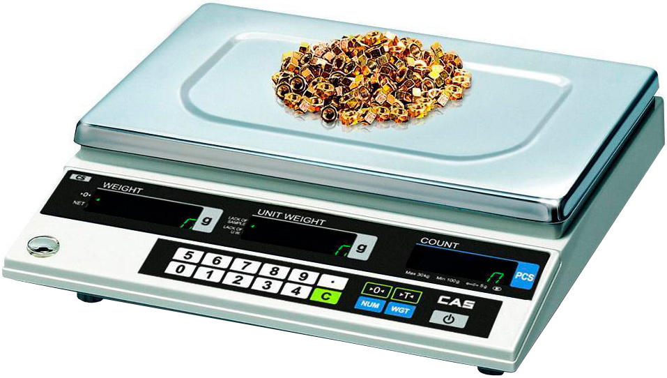 Счетные весы CAS CS-10 используются на предприятиях общественного питания и торговли. Модель оснащена флуоресцентным дисплеем, тензометрическим типом измерения, автоматической установкой нуля и выражением массы в количестве изделий (счетный режим).