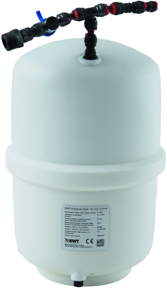 Накопительный бак BWT Pressure Tank 7L используется совместно с системами обратного осмоса BWT для аккумулирования чистой, подготовленной и оптимизированной воды на предприятиях общественного питания, торговли и пищевых производствах. Элементы накопительного бака изготовлены из материала безопасного для применения в пищевом производстве и устойчивого к перепадам давления.